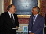 In ontvangstneming van het boek “”EEUWIGE LENTE”” van Jef Crab door dhr. Ivan Pittevils, eerste raadgever van de cel algemene beleidscoordinatie van premier Guy Verhofstadt